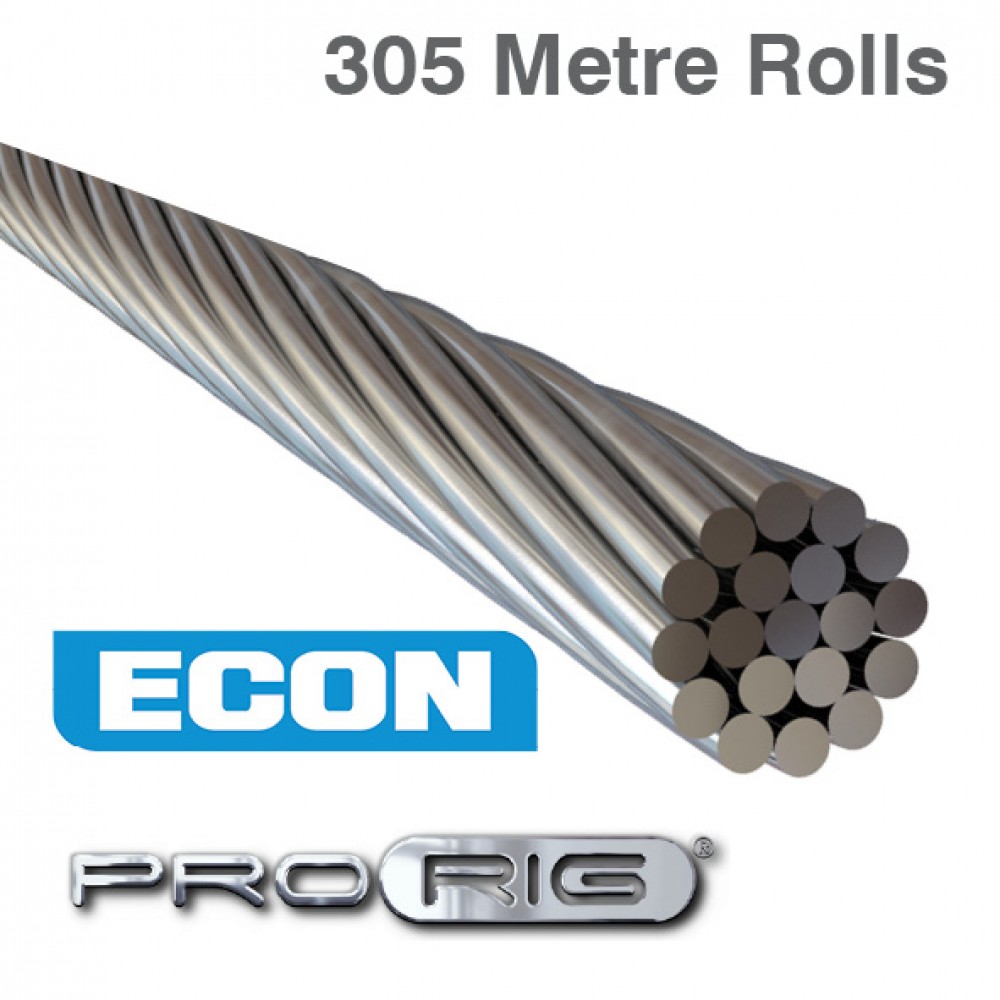 Econ Wire - Econ Wire sets the economy standard for all budget priced stainless steel wire rope. While it shouldn’t be compared with the higher quality ProRig wire, we are confident that Econ wire is the best available at this price level.