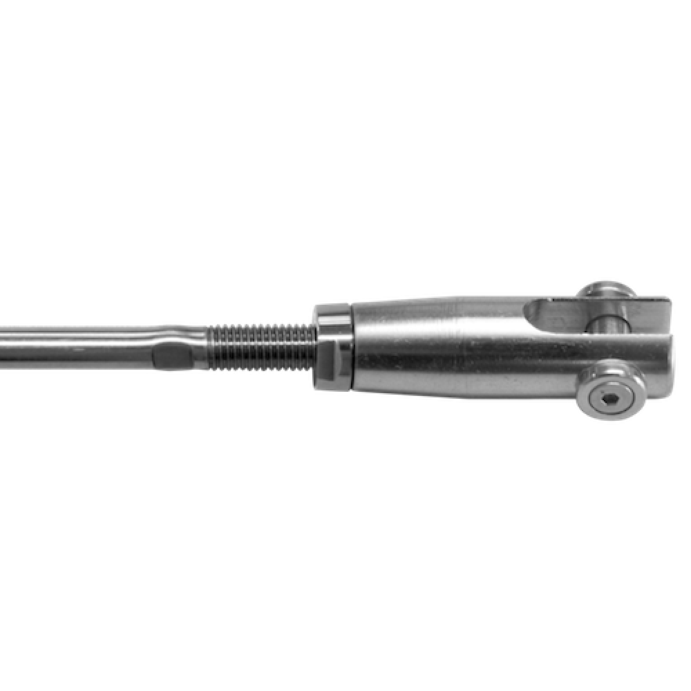 Tie bars may be used as an alternative to wire systems - especially for static structures such as balcony supports, tie rods, cross bracing and glass façades. Standard components are adjuster forks and inside threaded connectors for tie-bars. Tie bars are available on request, can be delivered with or without key width as well as a polished or unpolished version. Adjuster eyes can also be delivered on request.