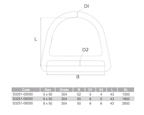 Dee Ring with Cross Bar 6 x 50mm AISI 304