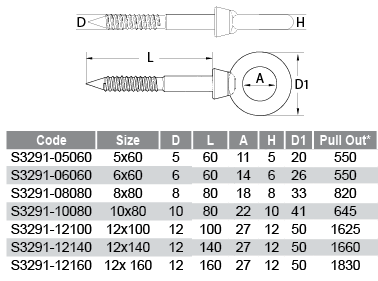 Miami Stainless cast AISI 316 stainless steel Eye Nut Coach Screws are specifically designed to fasten into wooden posts, walls or panels for lifting purposes. Miami Stainless Eye Nut Coach Screws can also be used to fasten stainless steel fittings to stair, ramp or angled sections.