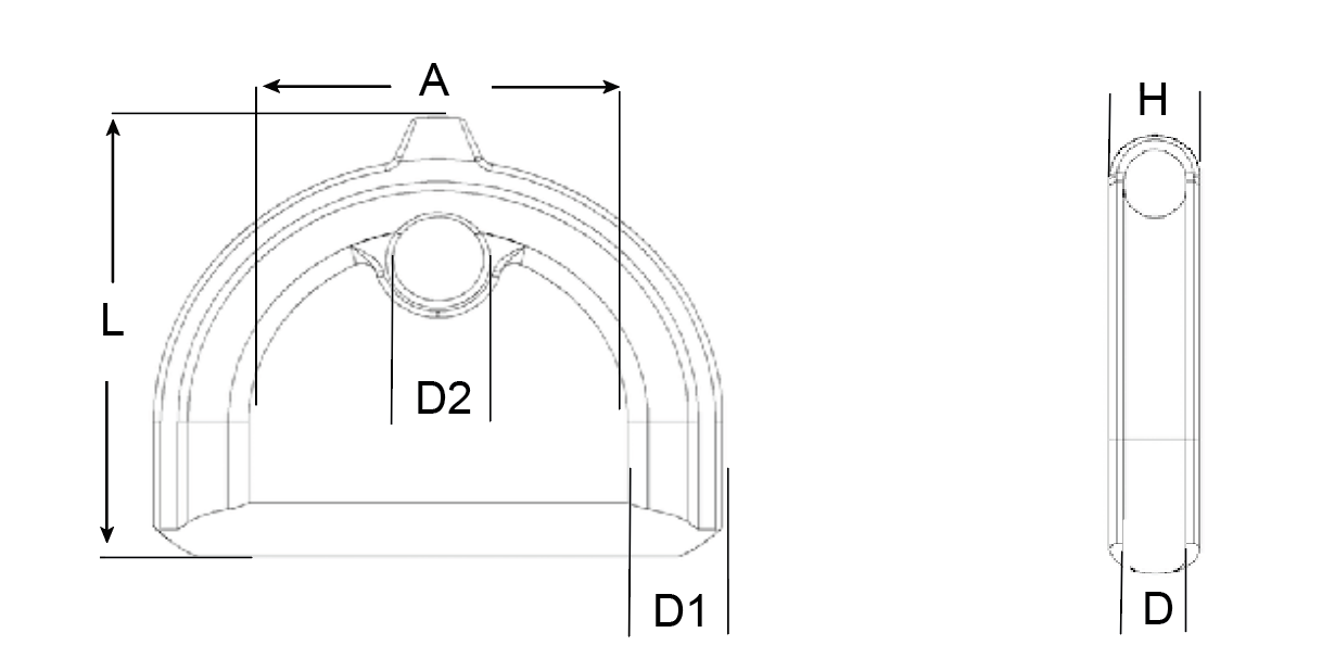 CODE SIZE SUITS WIRE D D1 D2 A L H BREAK LOAD