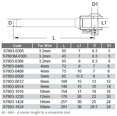 Miami Stainless Fork Terminals are cast AISI 316 marine grade stainless steel and designed to attach stainless steel wire rope to a wide range of fixtures and fittings such as Screw Eyes, Saddles and Eye Bolts. Miami Stainless supplies Econ and the ultra high quality ProRig brands. Please Note: Swage Terminals must be swaged to wire rope with an appropriate swaging press.