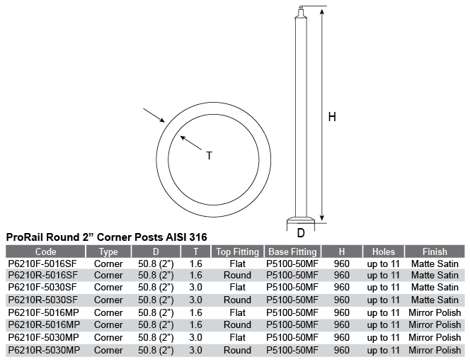 *All ProRail Round Posts base fittings come with P5101 Cover Plates in either mirror polish or matte satin finish