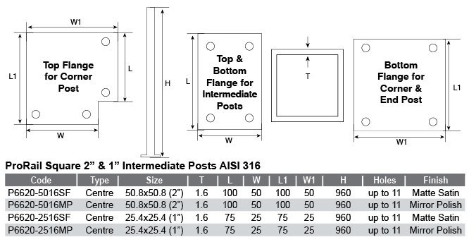 *All ProRail Square Posts have welded top and bottom flanges