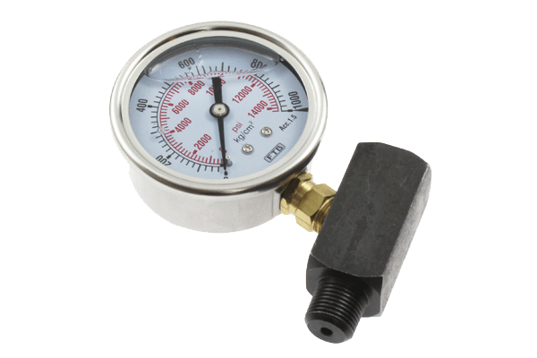 Miami Stainless GA-1000 Pressure Gauge helps prevent excess pressure on a Swage Press and cuts down swaging time by reducing time spent excessively swaging stainless steel terminals.