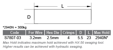 Swage Terminal 5.5 x 23mm suits 3.2mm Wire