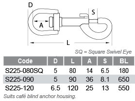 Miami Stainless Swivel Eye Bolt Snaps are made from high quality AISI 316 marine grade stainless steel. Miami Stainless stainless bolt snaps are specifically designed for ProRig Original Design Cafe Blind Anchor Housings, general purpose and shade sail applications.