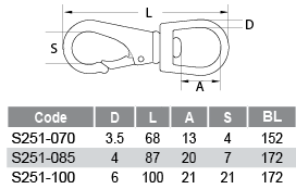 TRADE FORM100mm Swivel Eye Snaps AISI 316