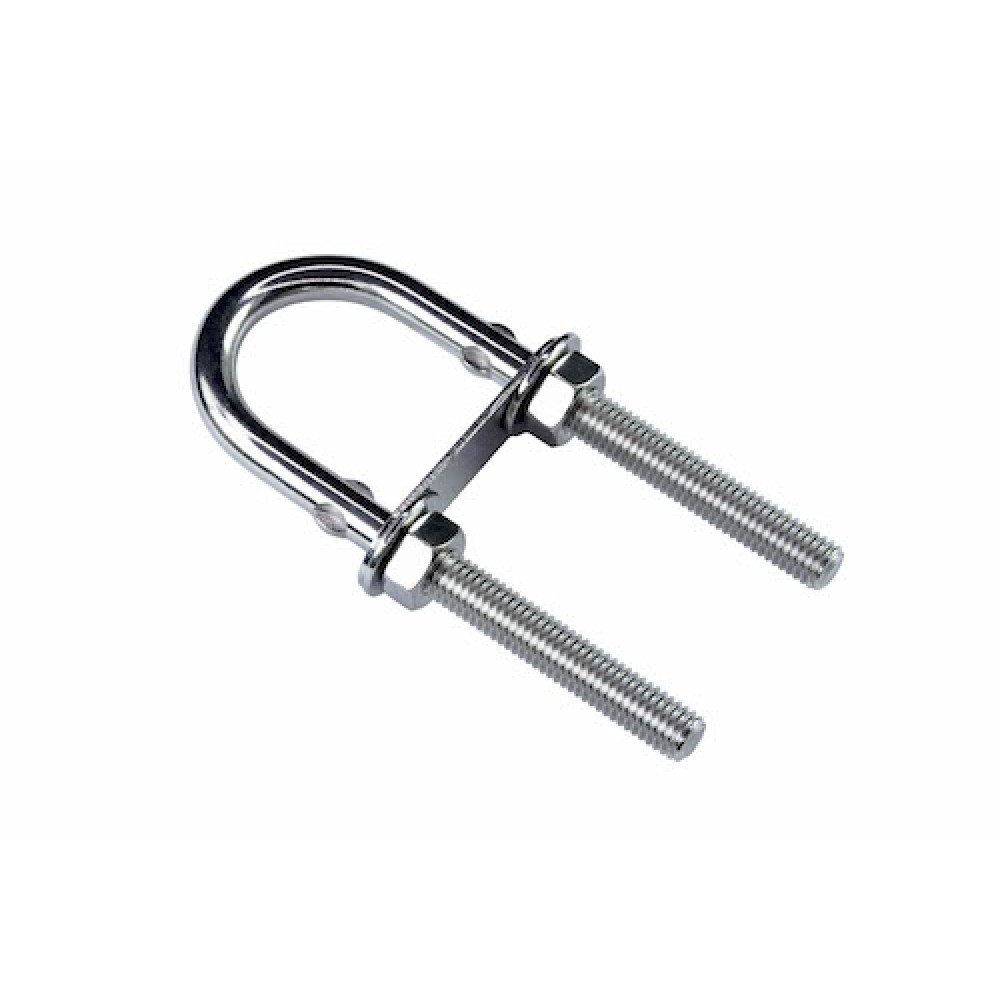 Miami Stainless U Bolts are made from AISI 304 stainless steel and designed for assembly onto a flat panel to serve as an anchor point or pulling ring.